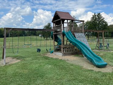 Our rural location has afforded us a large outdoor space which can be used additional fellowship, hosting outdoor events, and can someday provide us room to add new facilities if needed. We have a wonderful outdoor pavilion area with grills and a fireplace to keep us warm on cool fall nights. We have a nice playground where the kids enjoy running, sliding, and swinging. We also have 3 acres of open lawn perfect for hosting large outdoor events, church kickball games, or field day activities for the youth.